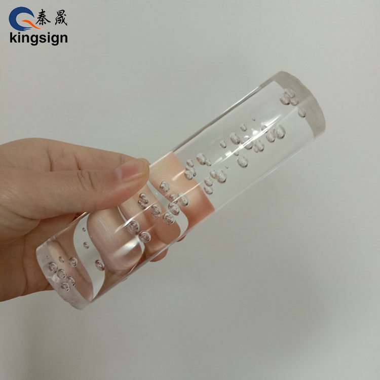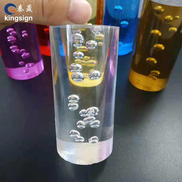 Suulakepuristettu tuotantoprosessi, läpinäkyvät ja värikkäät värit voidaan valita akryylikuplatangosta. Kuplan kokoa voidaan säätää. Pituusrajoitusta ei ole, voimme räätälöidä pituuden sinulle, sitä käytetään pääasiassa sisustukseen, valaistukseen, huonekaluihin.