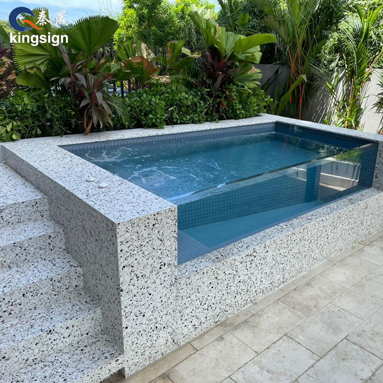 Kingsign SPA -allasakryyli -ikkunat on valmistettu Kiinasta, ja ne tarjoavat erittäin korkealaatuisia akryylipaneeleja valettujen lohkojen valmistuksen ja kemiallisen liimausprosessin ansiosta. Ikkuna on UV -kestävä ja läpinäkyvä jopa 93%. Annamme SPA -akryyli -ikkunoillemme kellastumattoman 30 vuoden takuun.
